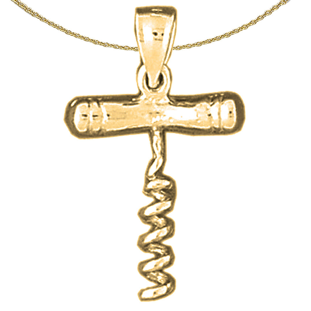 Yellow Gold-plated Silver 3D Cork Screw Pendant