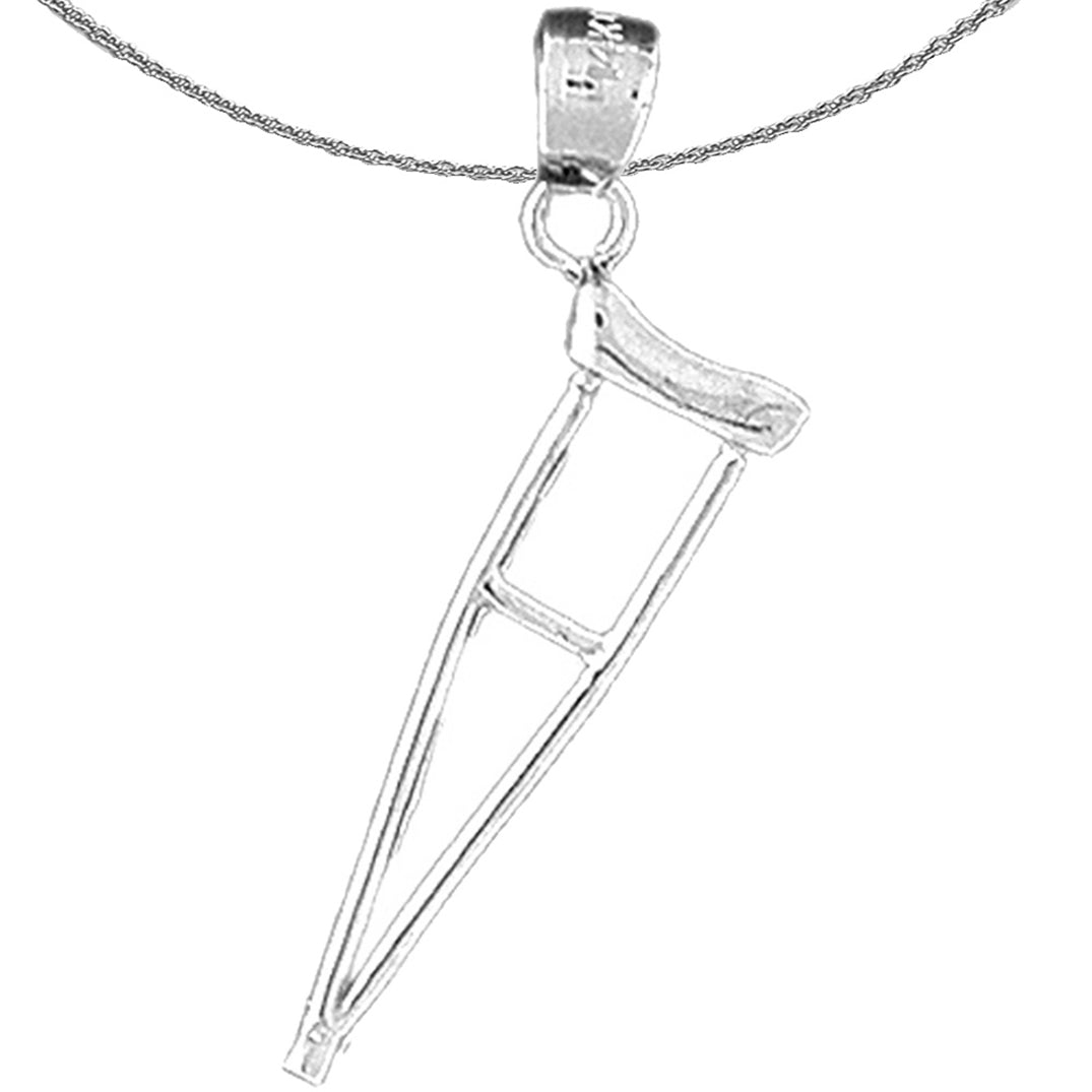 3D-Krückenanhänger aus Sterlingsilber (rhodiniert oder gelbgoldbeschichtet)