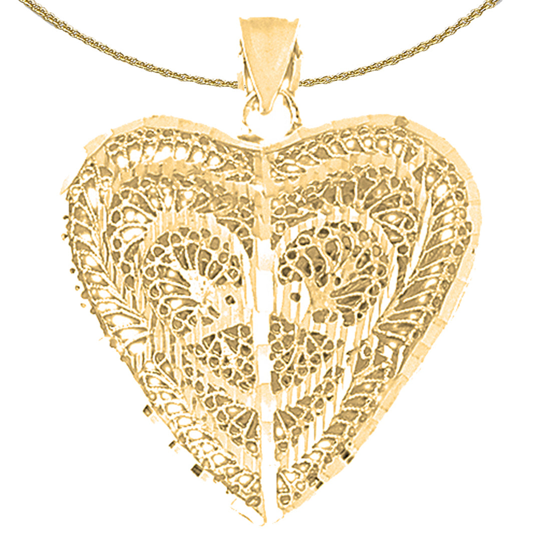 Yellow Gold-plated Silver 3D Filigree Heart Pendant