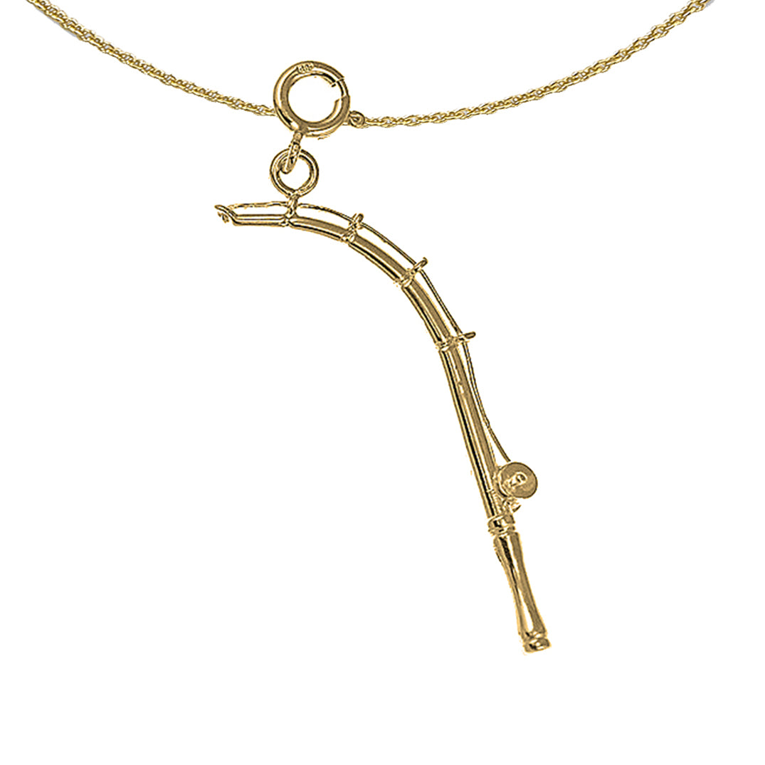 Yellow Gold-plated Silver 3D Fishing Pole Pendant