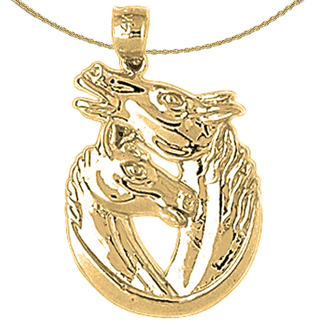 Yellow Gold-plated Silver 3D Horseshoe With Horses Pendant