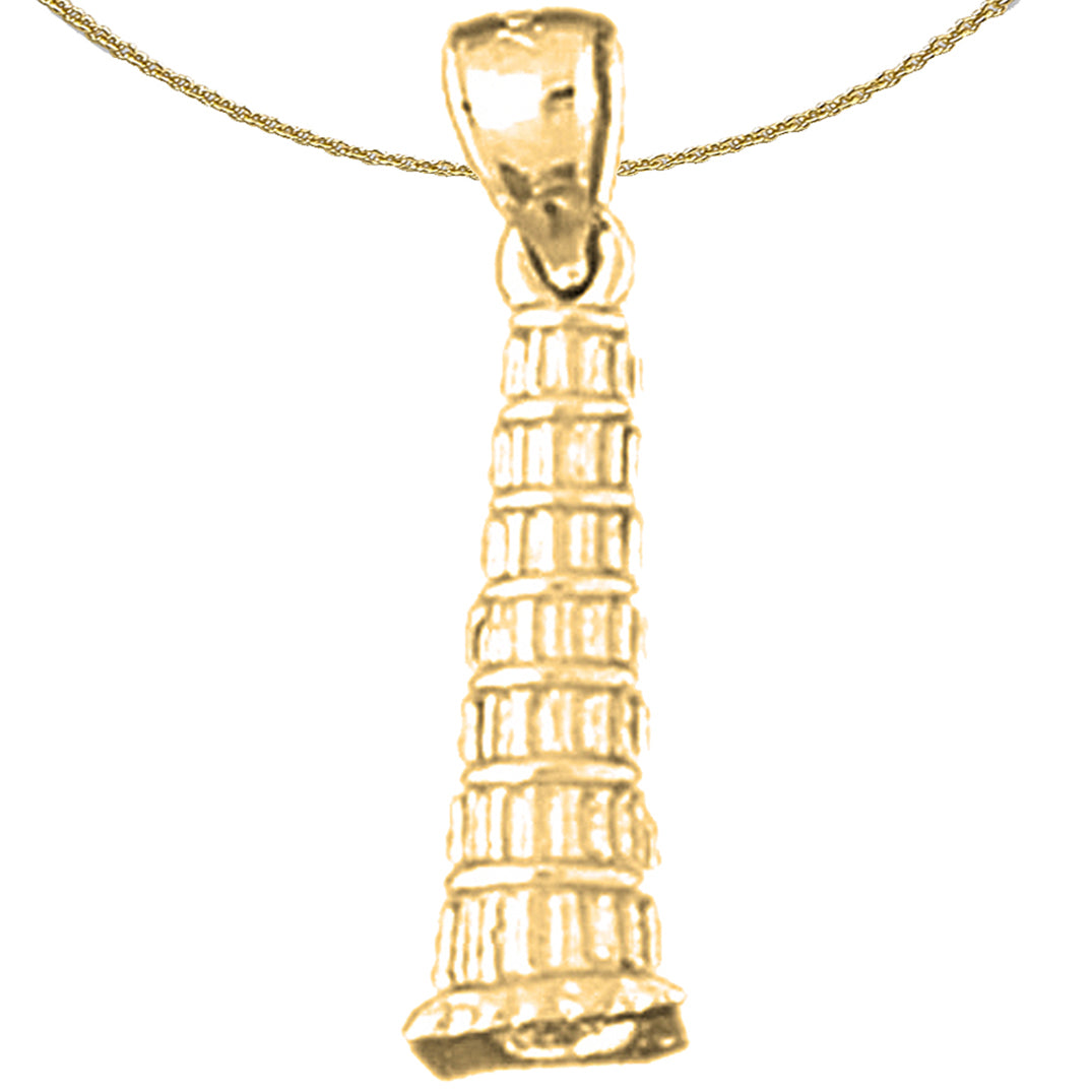 3D-Anhänger „Schiefer Turm von Pisa“ aus Sterlingsilber (rhodiniert oder gelbvergoldet)