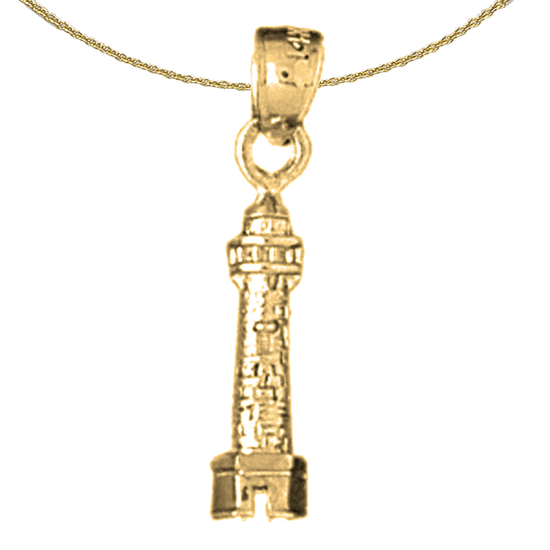 3D-Leuchtturm-Anhänger aus Sterlingsilber (rhodiniert oder gelbvergoldet)