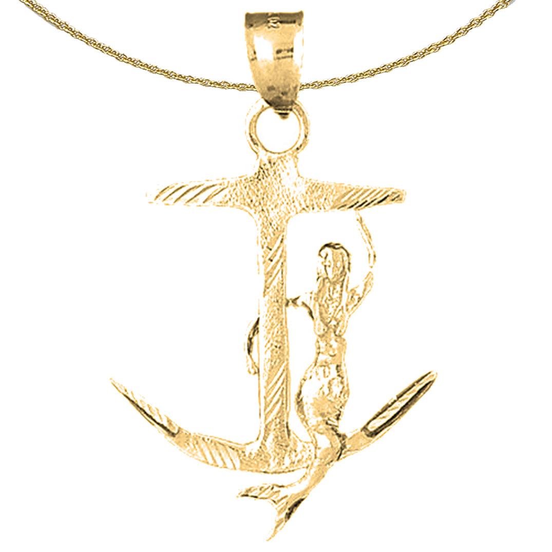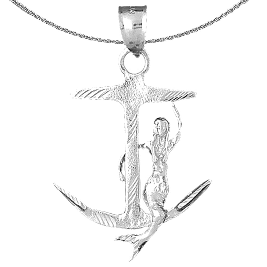 3D-Anhänger „Meerjungfrau und Anker“ aus Sterlingsilber (rhodiniert oder gelbvergoldet)