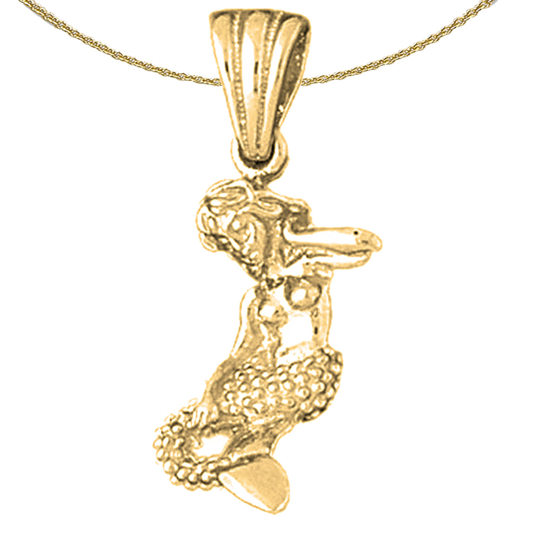 3D-Meerjungfrauen-Anhänger aus Sterlingsilber (rhodiniert oder gelbvergoldet)