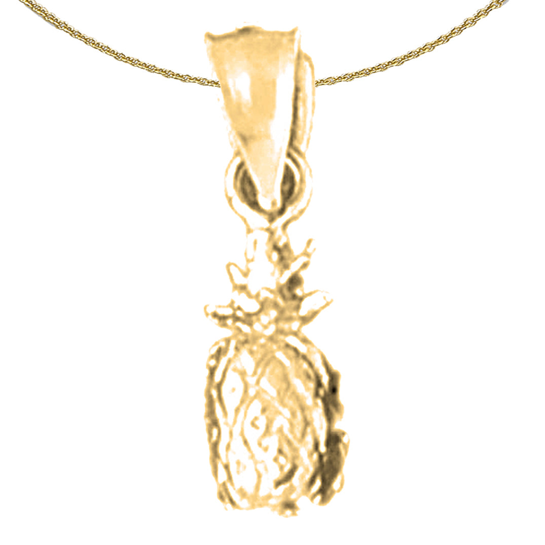 3D-Ananas-Anhänger aus Sterlingsilber (rhodiniert oder gelbgoldbeschichtet)