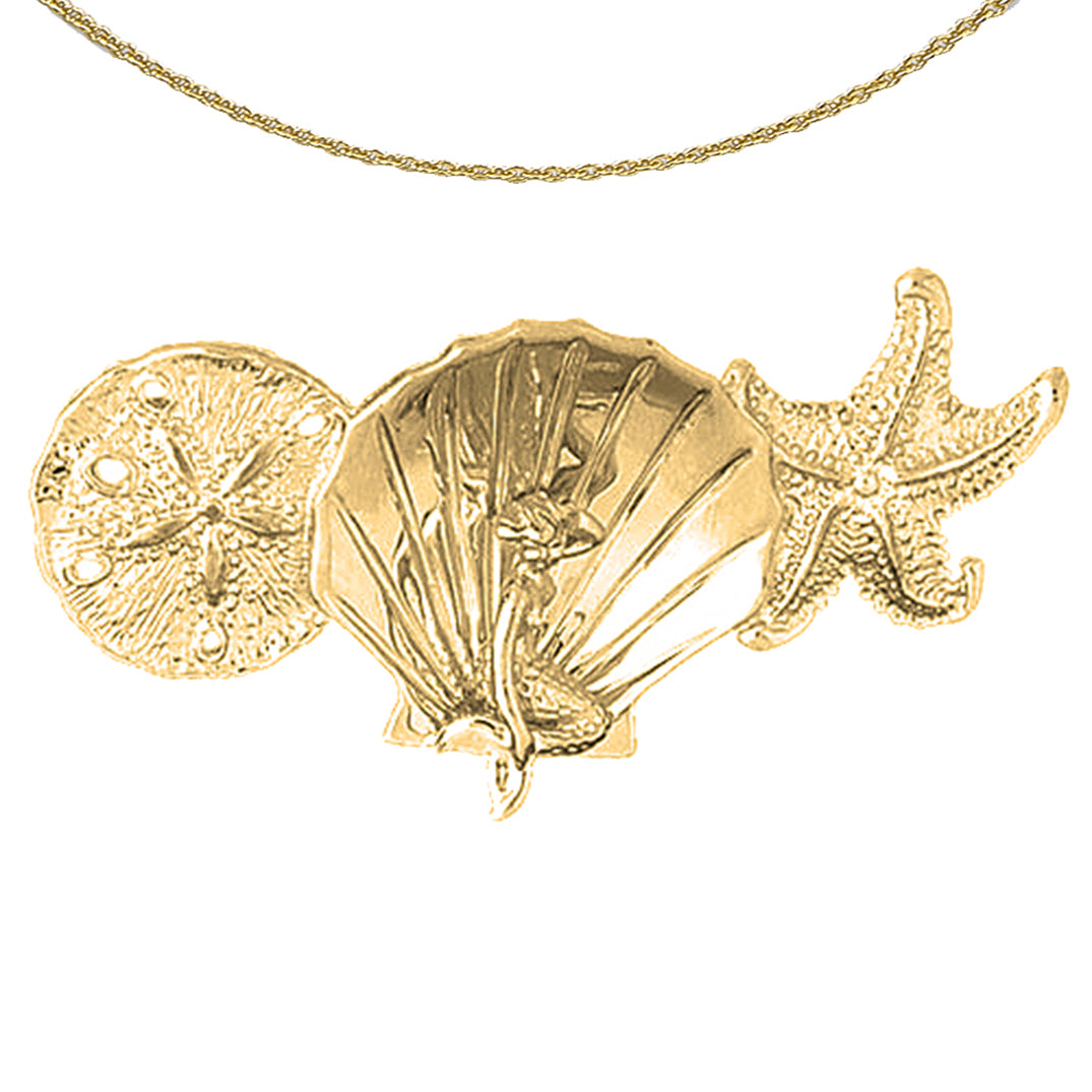 Yellow Gold-plated Silver 3D Sand Dollar, Shell With Mermaid, And Starfish Pendant