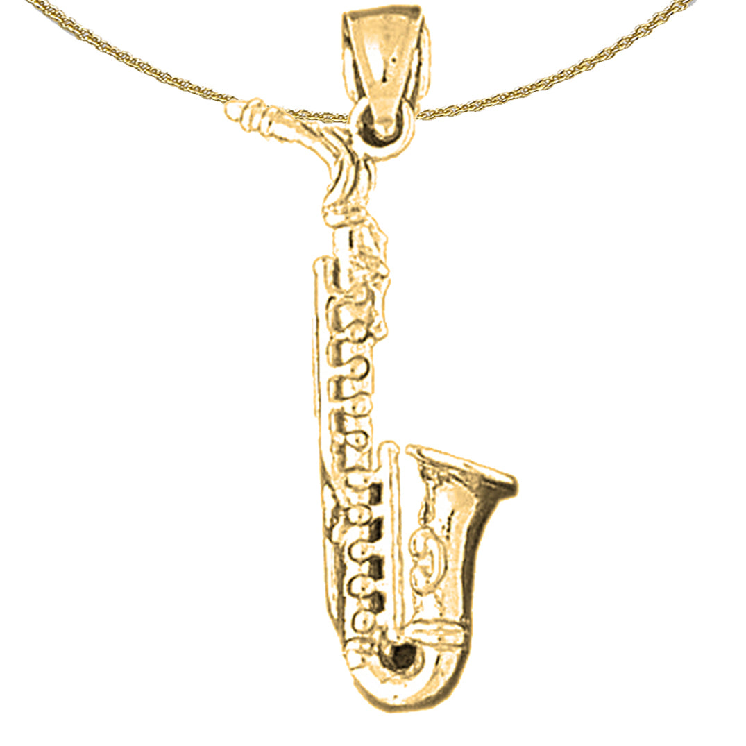 3D-Saxophon-Anhänger aus Sterlingsilber (rhodiniert oder gelbgoldbeschichtet)