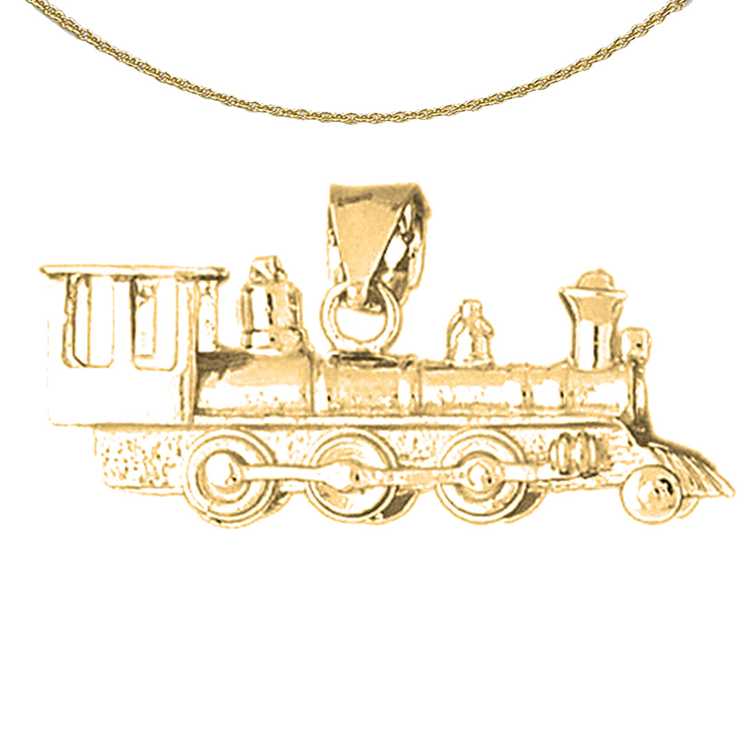 Anhänger aus Sterlingsilber mit 3D-Eisenbahnmotor und Lokomotive (rhodiniert oder gelbvergoldet)
