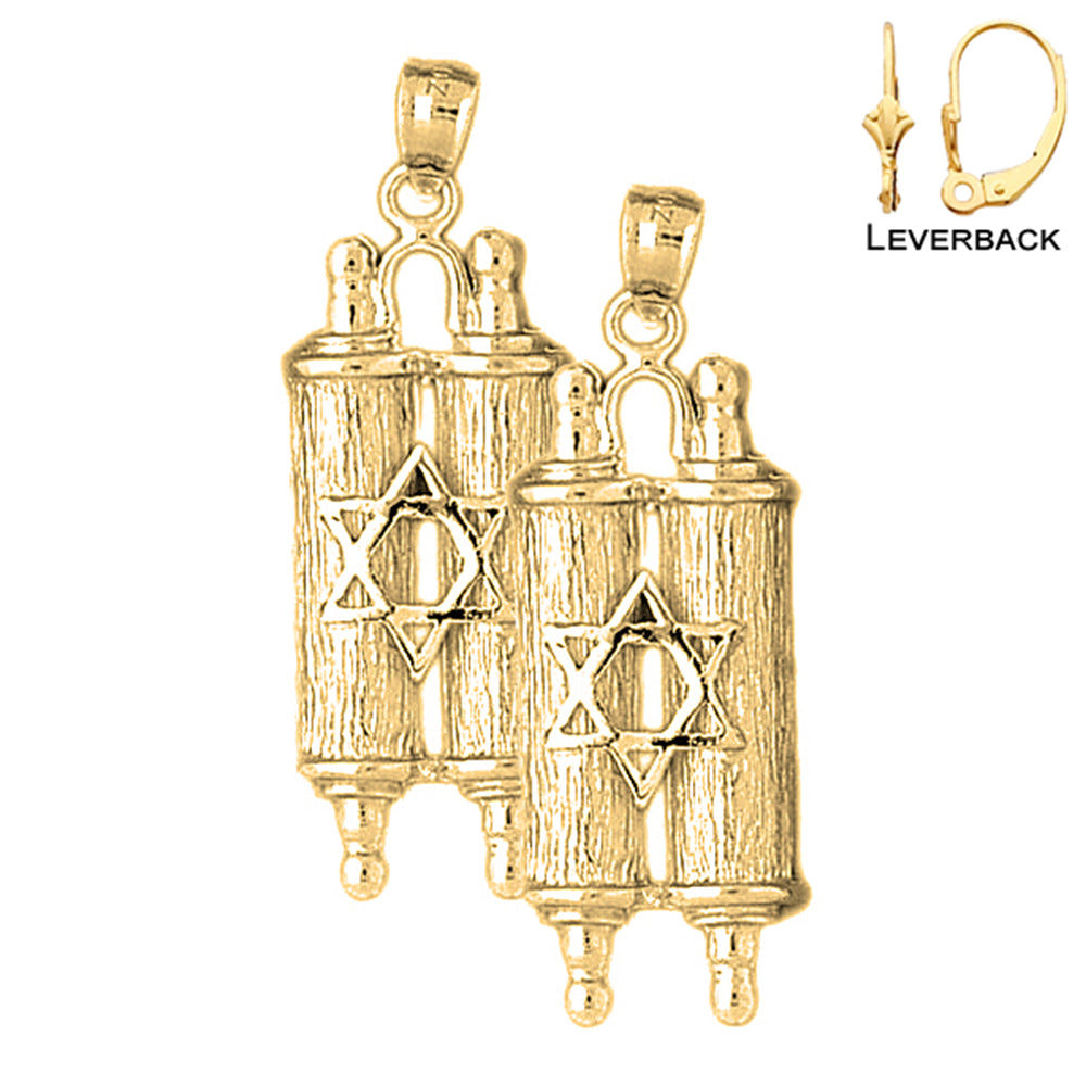 Zeigen Sie Ihren Glauben und werten Sie Ihren Stil mit unseren 40 mm großen jüdischen Thorarollen-Ohrringen aus Sterlingsilber mit Stern auf. Bestellen Sie jetzt und erleben Sie die Schönheit und Eleganz dieser zeitlosen Stücke.