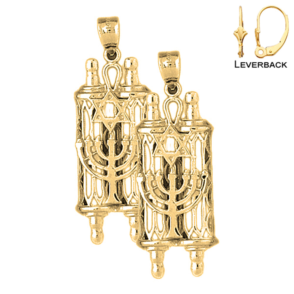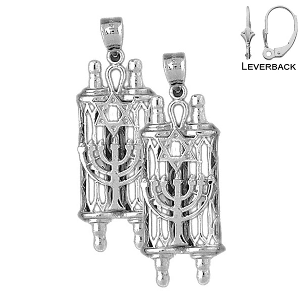 Erleben Sie die Schönheit der Judaica mit unseren 40 mm großen Thora-Rollen-Ohrringen aus Sterlingsilber mit Stern und Menora. Kaufen Sie jetzt ein und lassen Sie Ihren Stil erstrahlen.