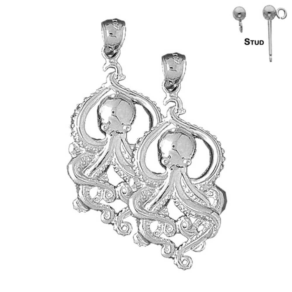 Wir präsentieren Ihnen unsere atemberaubenden 43 mm großen Oktopus-Ohrringe aus Sterlingsilber, die wahlweise mit Weiß- oder Gelbgoldbeschichtung erhältlich sind. Diese exquisiten Ohrringe sind ein echtes Statement-Stück, das überall Aufmerksamkeit erregen wird.