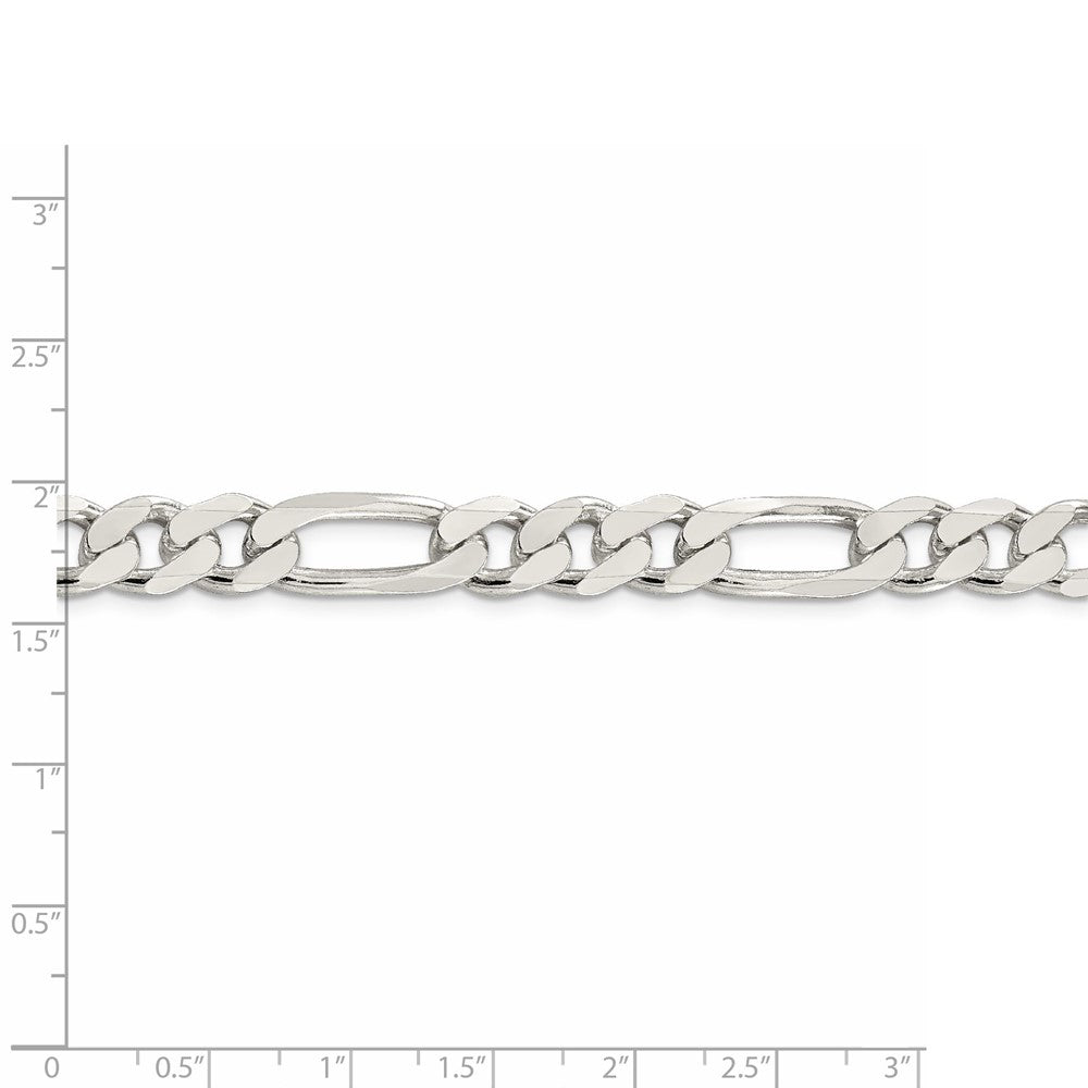 Sterling Silver 9.5mm Pave Flat Figaro Chain