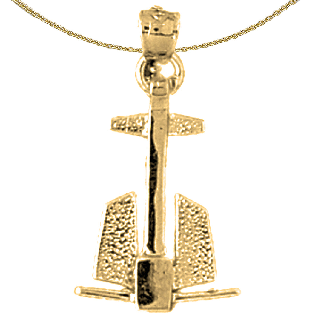Yellow Gold-plated Silver Anchor 3D Pendant