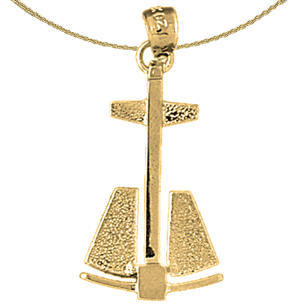 Yellow Gold-plated Silver Anchor 3D Pendant