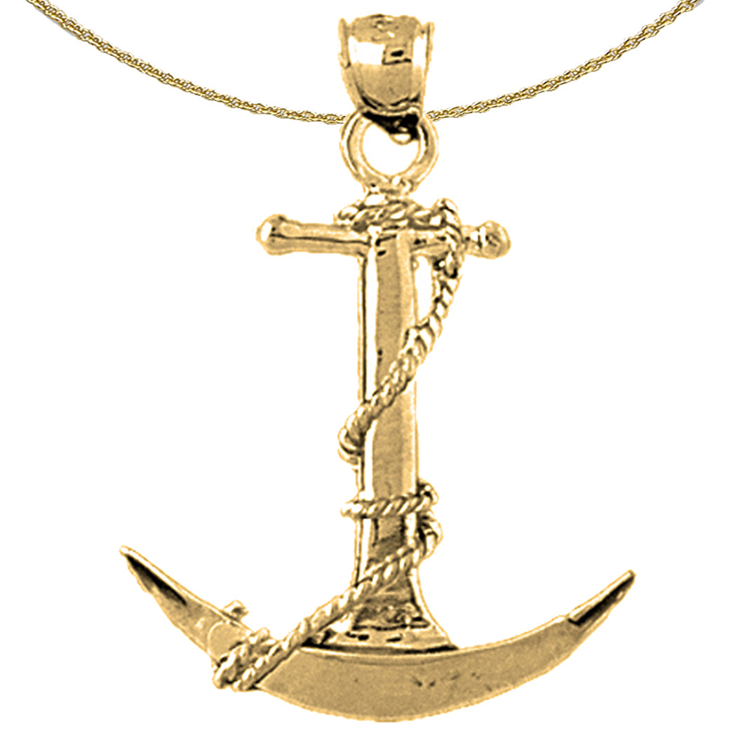 Yellow Gold-plated Silver Anchor 3D Pendant