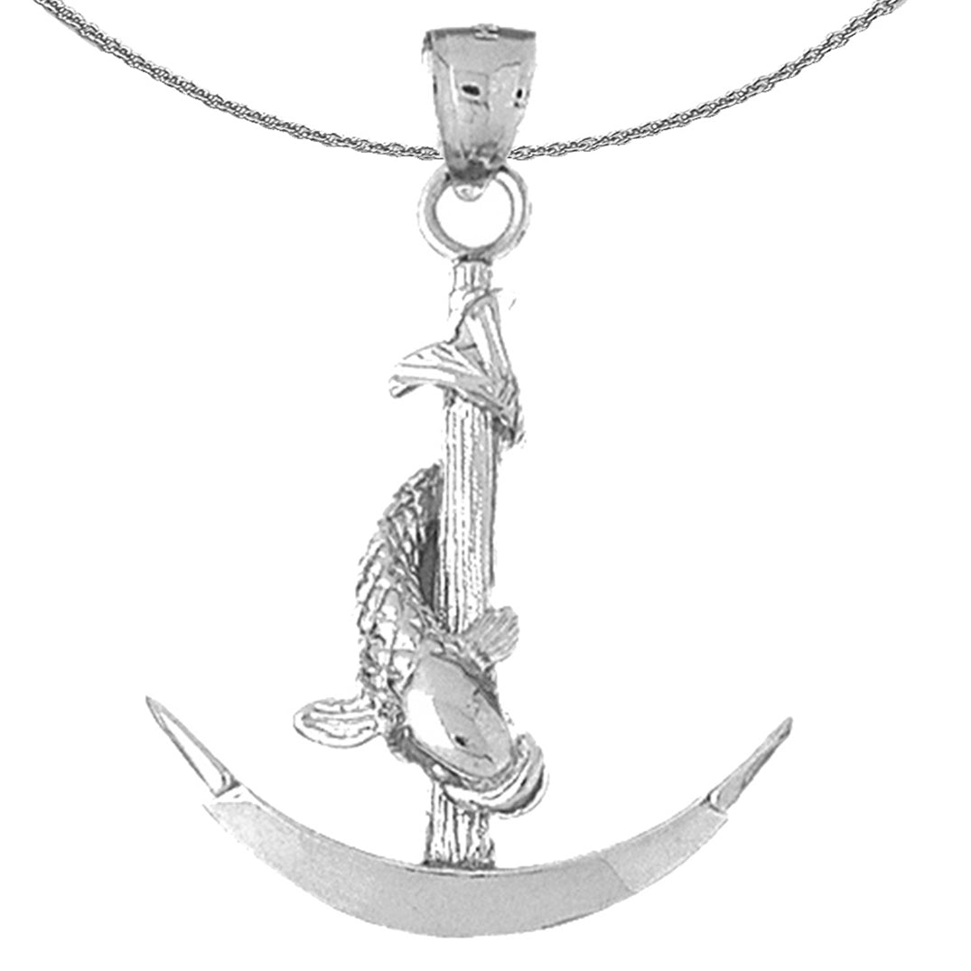 Silver Anchor With Fish 3D Pendant