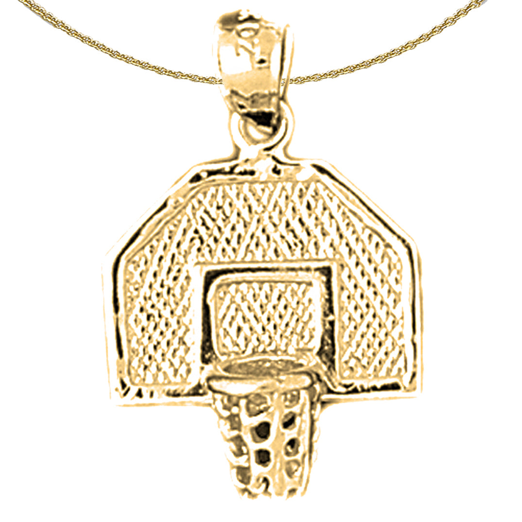 Basketballkorb-Anhänger aus Sterlingsilber (rhodiniert oder gelbgoldbeschichtet)