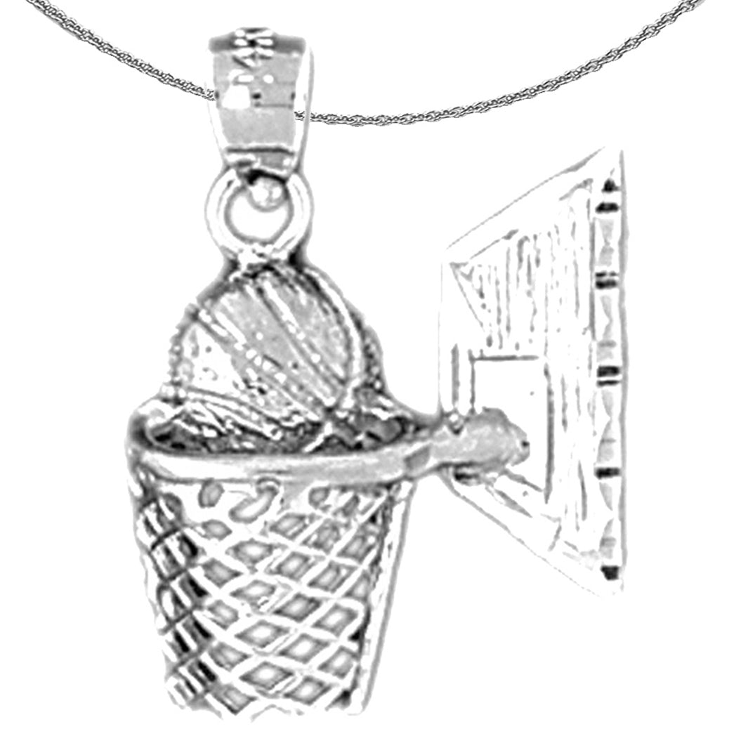 Basketballkorb-Anhänger aus Sterlingsilber (rhodiniert oder gelbgoldbeschichtet)
