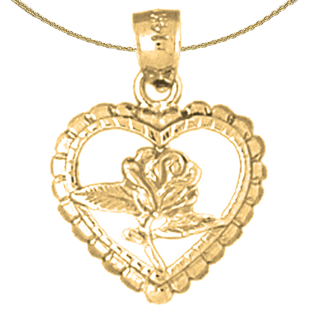Herzanhänger aus Sterlingsilber mit Rose (rhodiniert oder gelbvergoldet)