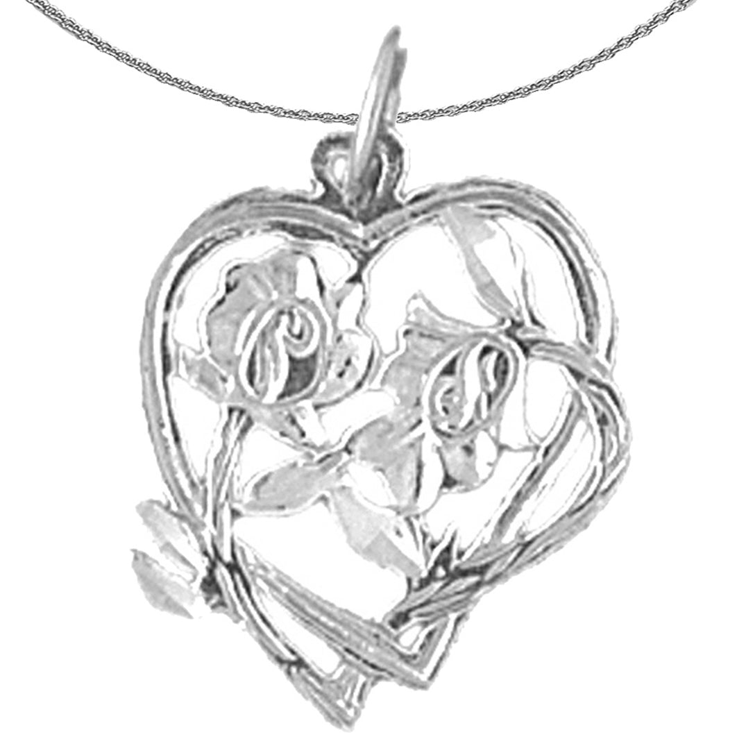 Sterling Silver Heart With Rose Pendant