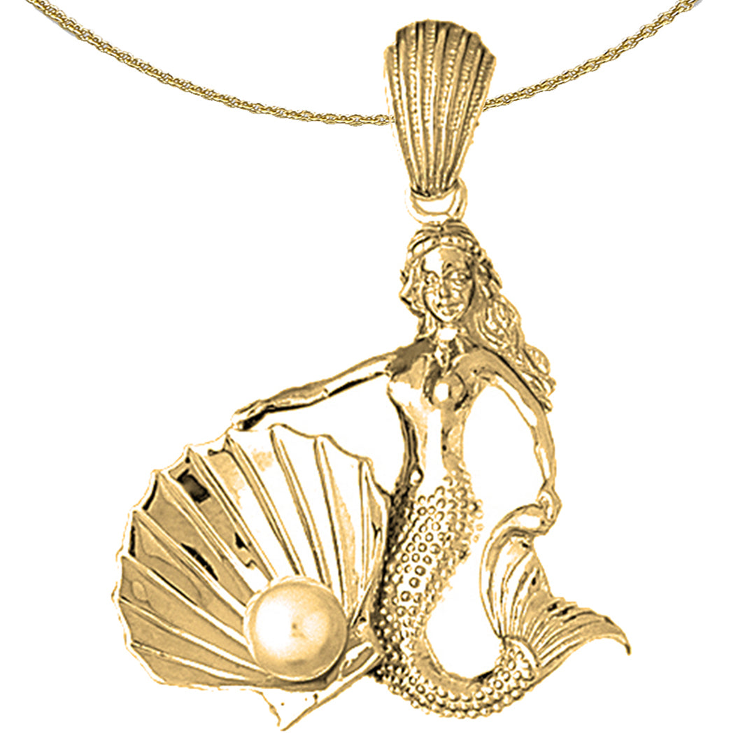 Sterling Silber Meerjungfrau mit Muschel- und Perlenanhänger (rhodiniert oder gelbvergoldet)