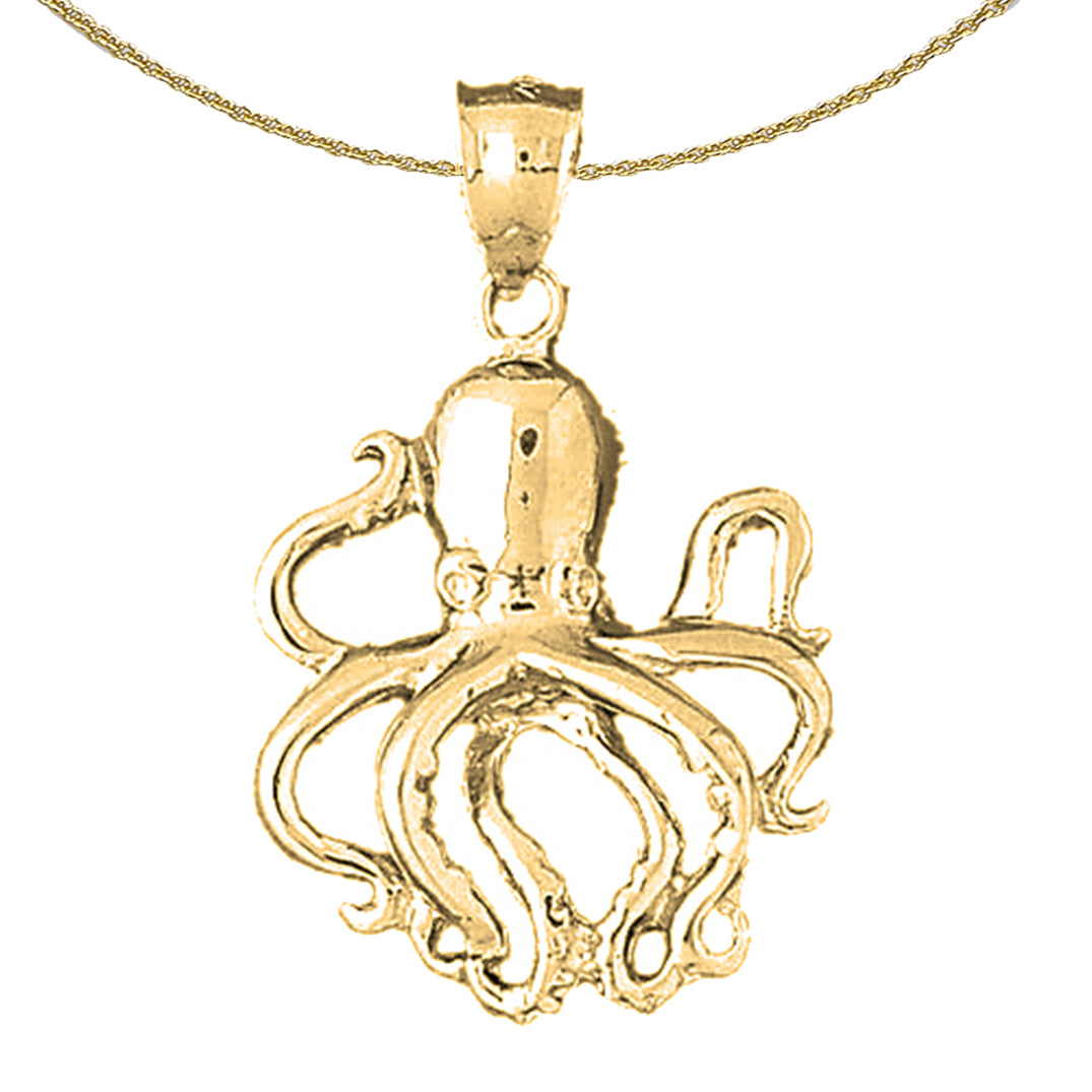 Oktopus-Anhänger aus Sterlingsilber (rhodiniert oder gelbvergoldet)