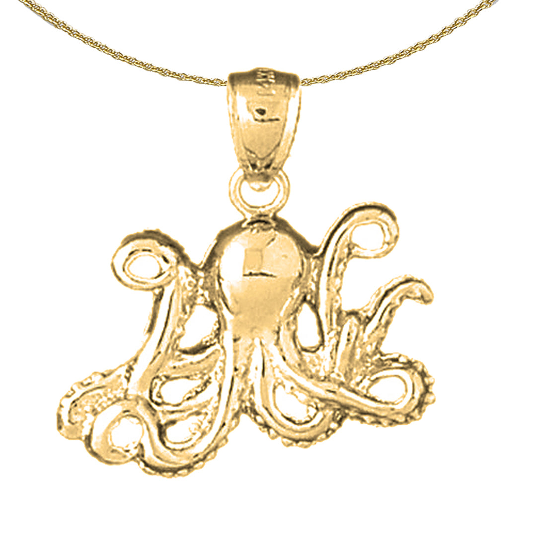 Oktopus-Anhänger aus Sterlingsilber (rhodiniert oder gelbvergoldet)