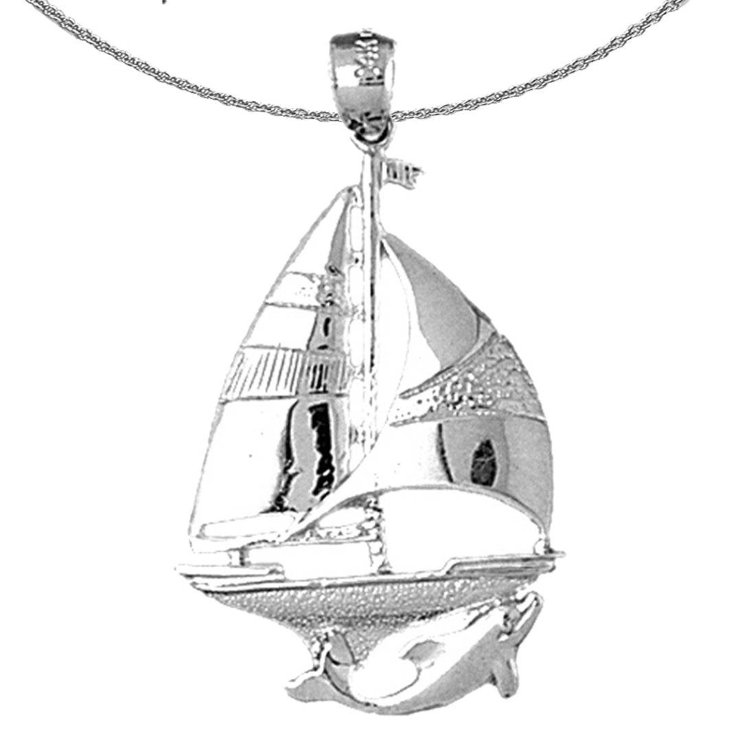 Segelboot-Anhänger aus Sterlingsilber mit Delfin (rhodiniert oder gelbvergoldet)