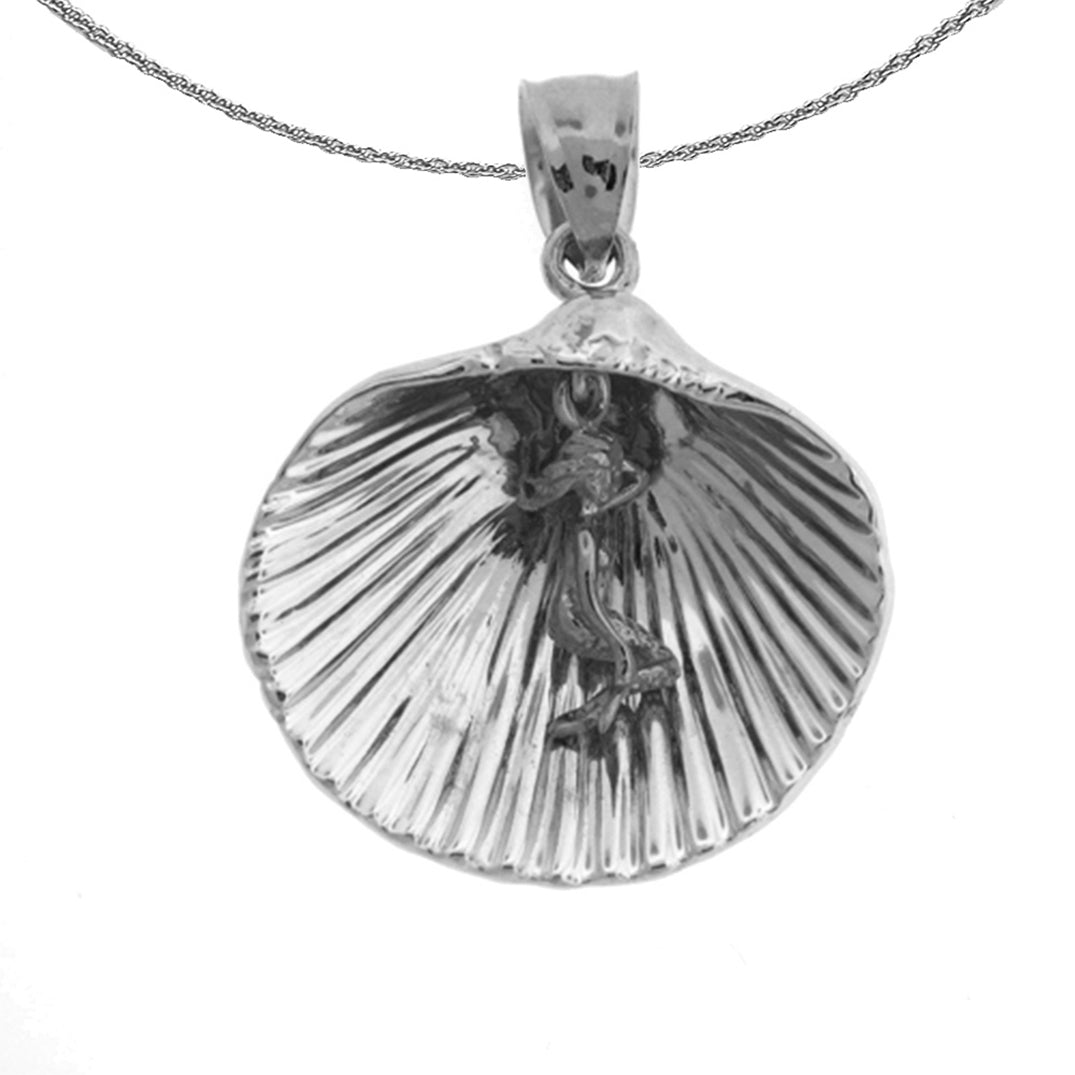 Muschelanhänger aus Sterlingsilber mit Meerjungfrau (rhodiniert oder gelbvergoldet)