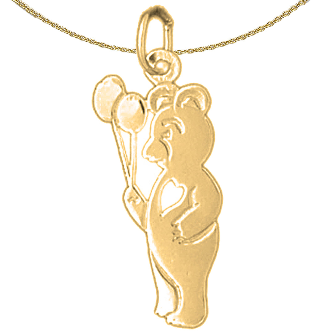 Yellow Gold-plated Silver Teddy Bear With Balloons Pendant