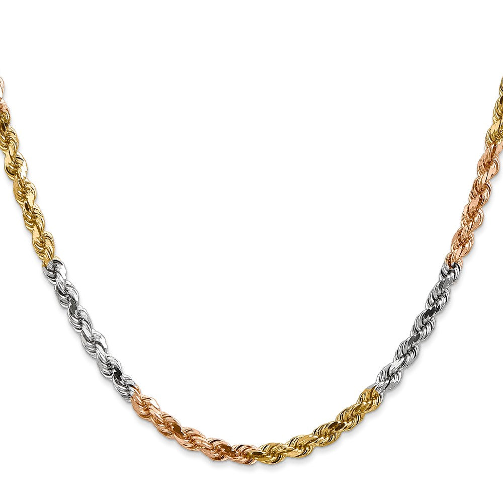 14K Tri-Color Gold 4mm Diamond-cut Rope Chain