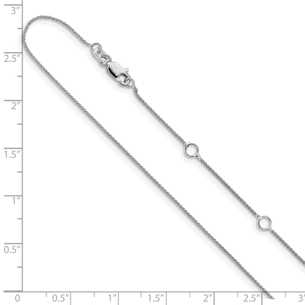 14K White Gold .8mm Spiga (Wheat) 1in+1in Adjustable Chain