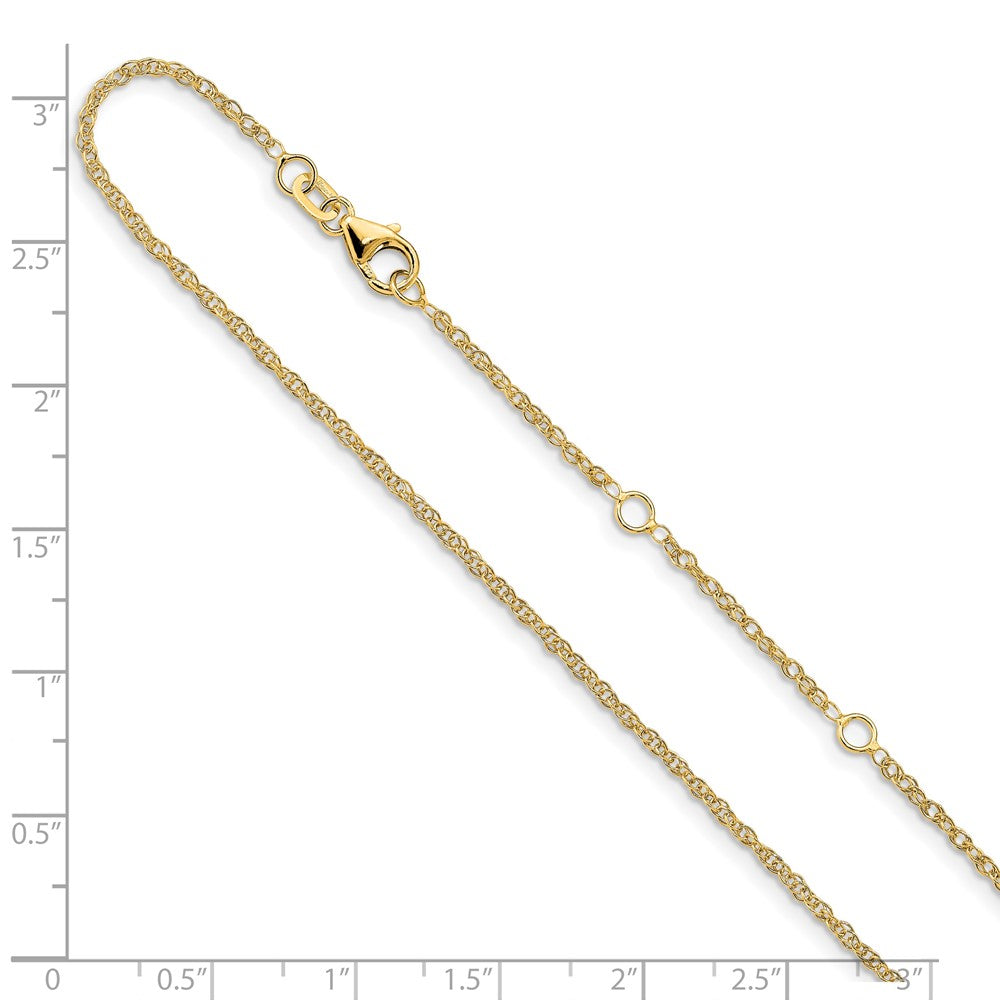 14K Yellow Gold 1.5mm Diamond-cut Loose Rope 1in+1in Adjustable Chain