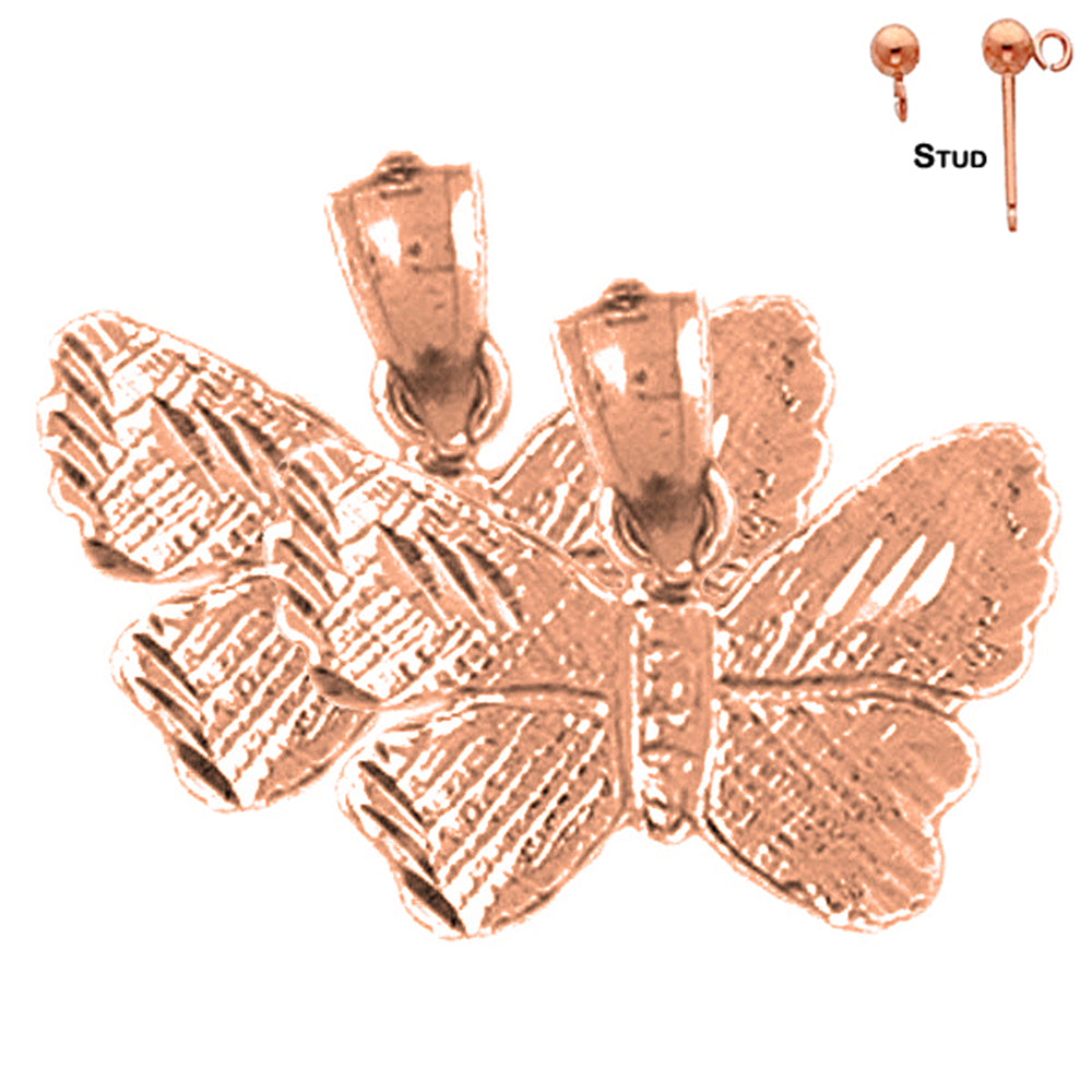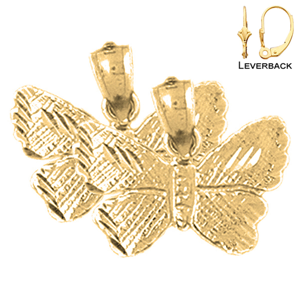 Pendientes de Mariposas de Oro de 14K o 18K de 15mm