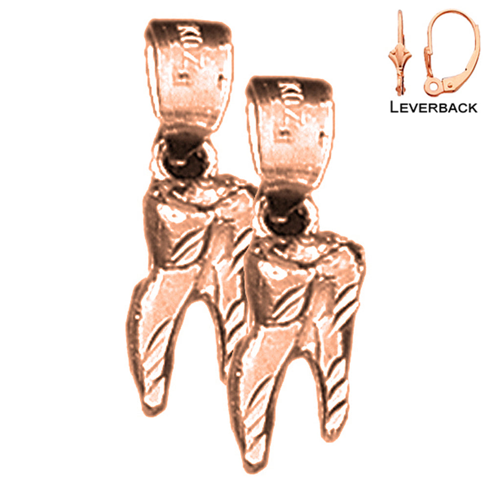 Pendientes de dientes 3D de oro de 14 quilates o 18 quilates