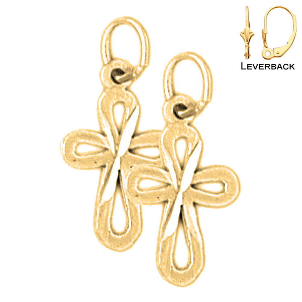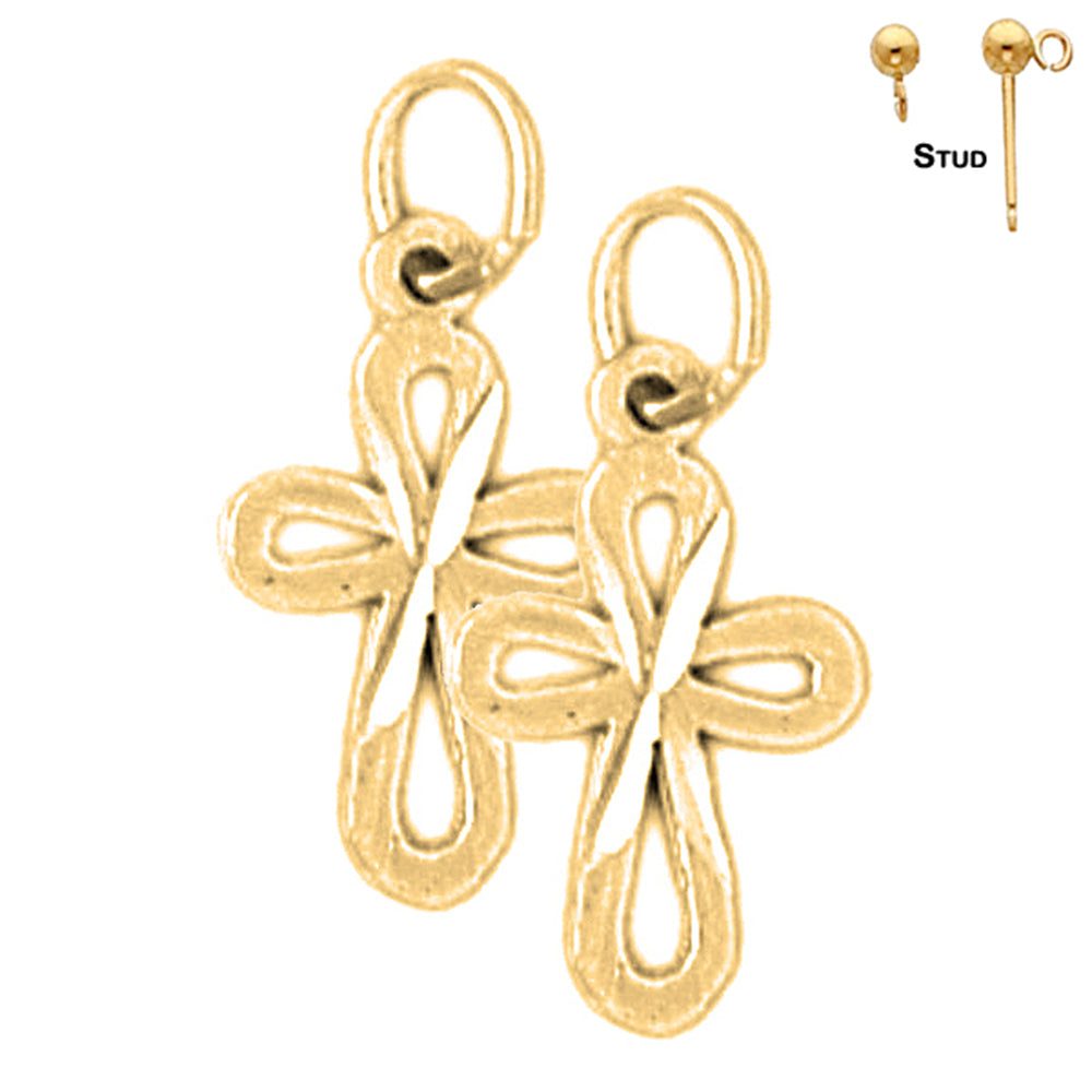 Estos son unos hermosos aretes de cruz latina de oro amarillo de 14k de 19 mm. Estos aretes de oro amarillo de 14k miden 19 mm de largo por 10 mm de ancho. JewelsObsession crea todas las joyas de oro en nuestras instalaciones de fabricación de última generación.