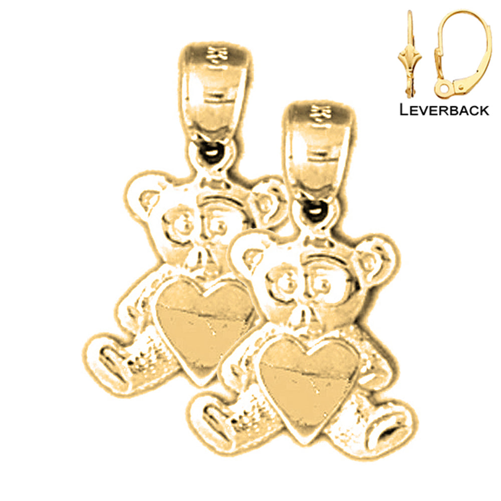 14K or 18K Gold 19mm Teddy Bear With Heart Earrings