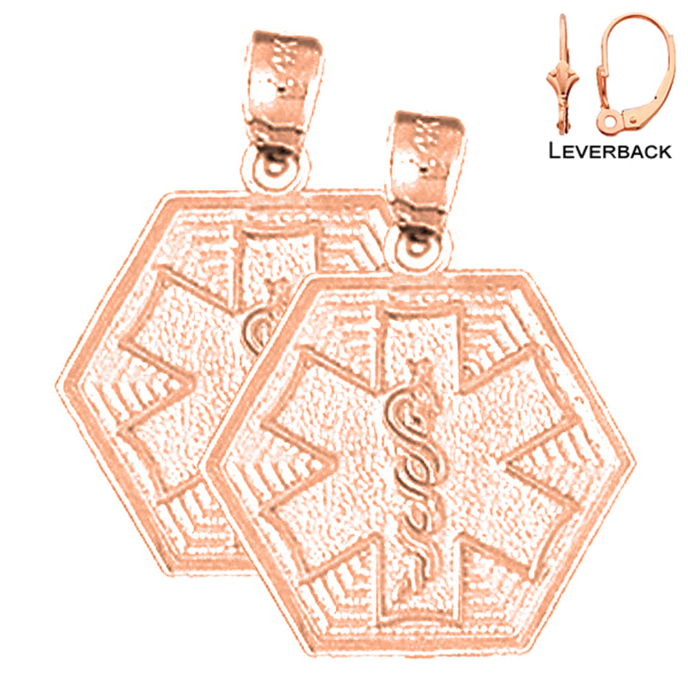 14K or 18K Gold 21mm Medical Alert Caduceus Earrings
