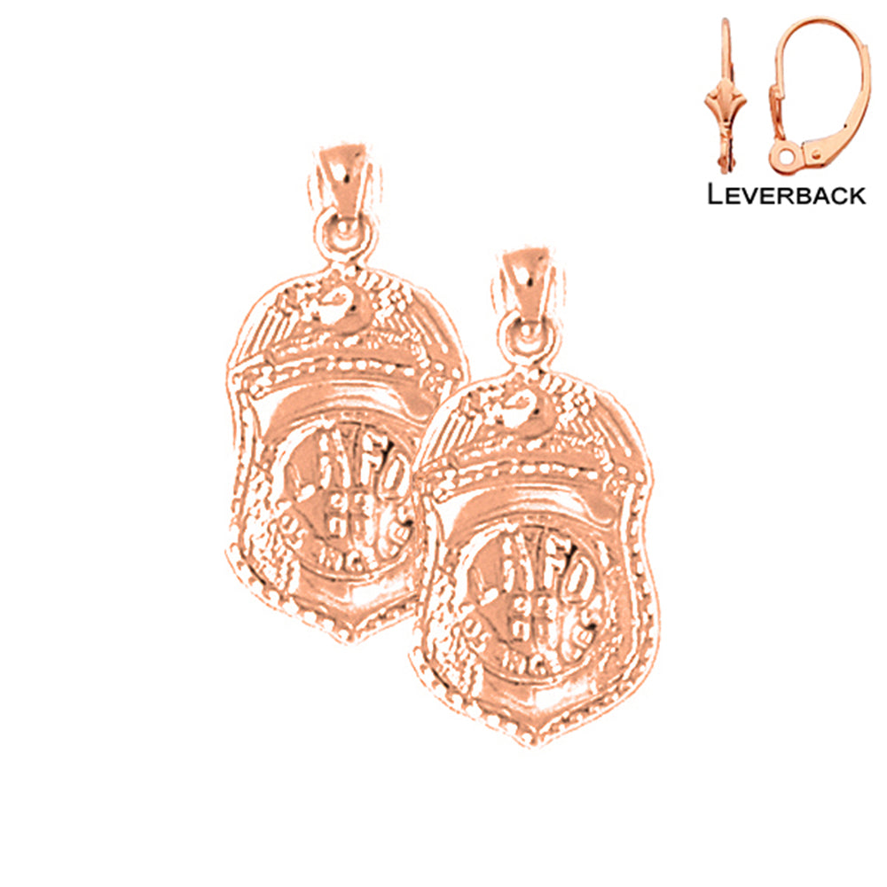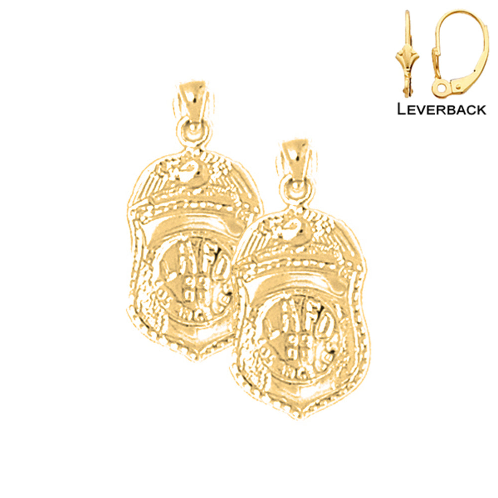 14K or 18K Gold 22mm Fire Department Badge Earrings