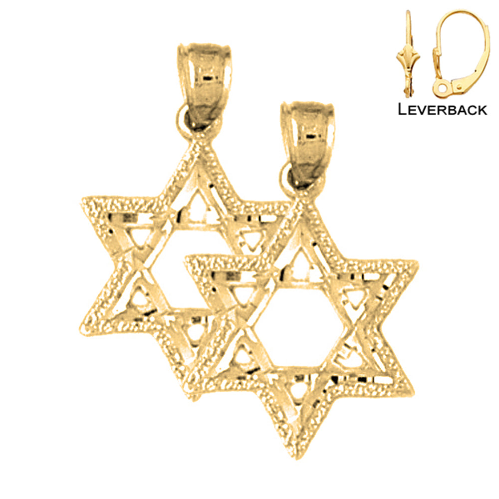 Este es un hermoso arete de estrella de David de oro amarillo de 14k de 22 mm. Estos aretes de oro amarillo de 14k miden 22 mm de largo por 15 mm de ancho. JewelsObsession crea todas las joyas de oro en nuestras instalaciones de fabricación de última generación.