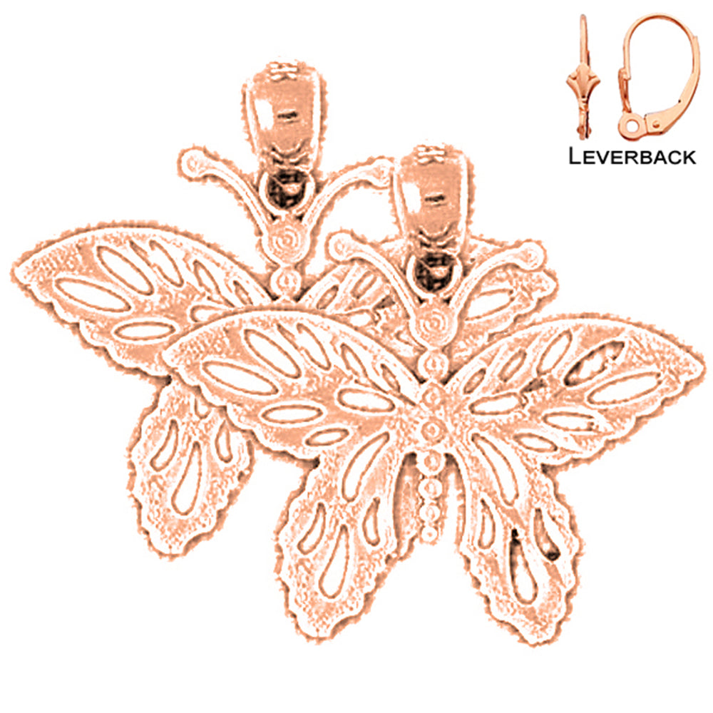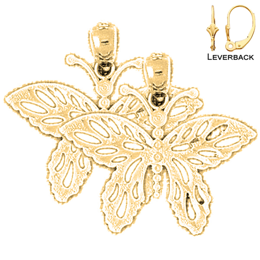 Pendientes de Mariposas de Oro de 14K o 18K de 23mm