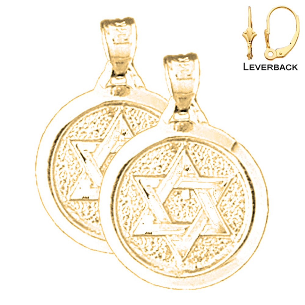 Estos son unos hermosos aretes de estrella de David de oro amarillo de 14k de 23 mm. Estos aretes de oro amarillo de 14k miden 23 mm de largo por 17 mm de ancho. JewelsObsession crea todas las joyas de oro en nuestras instalaciones de fabricación de última generación.