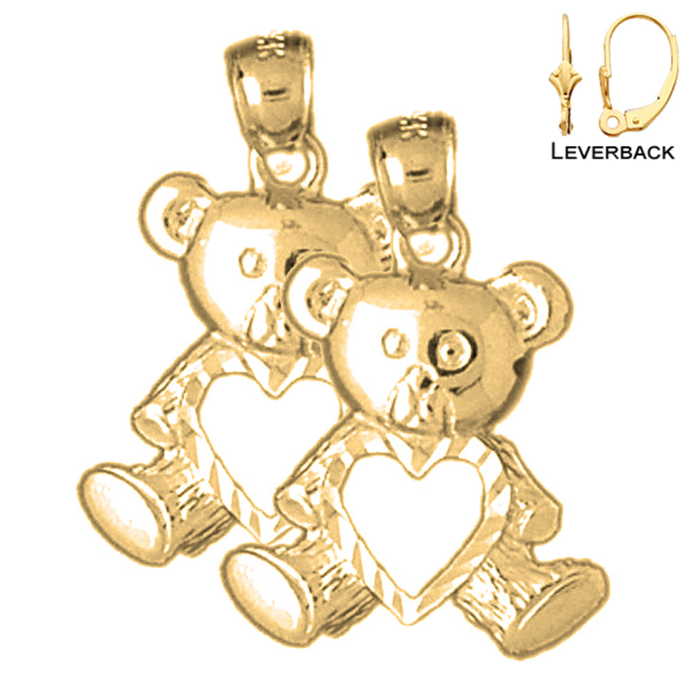 14K or 18K Gold 23mm Teddy Bear With Heart Earrings