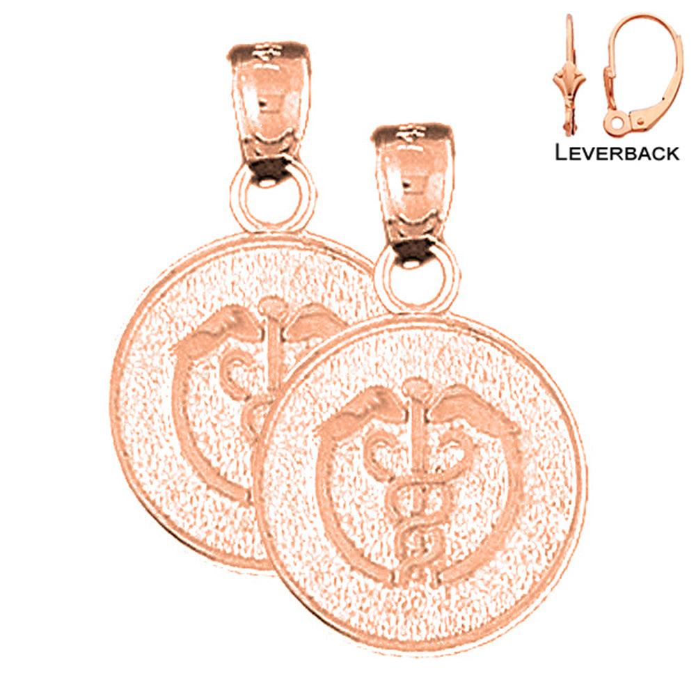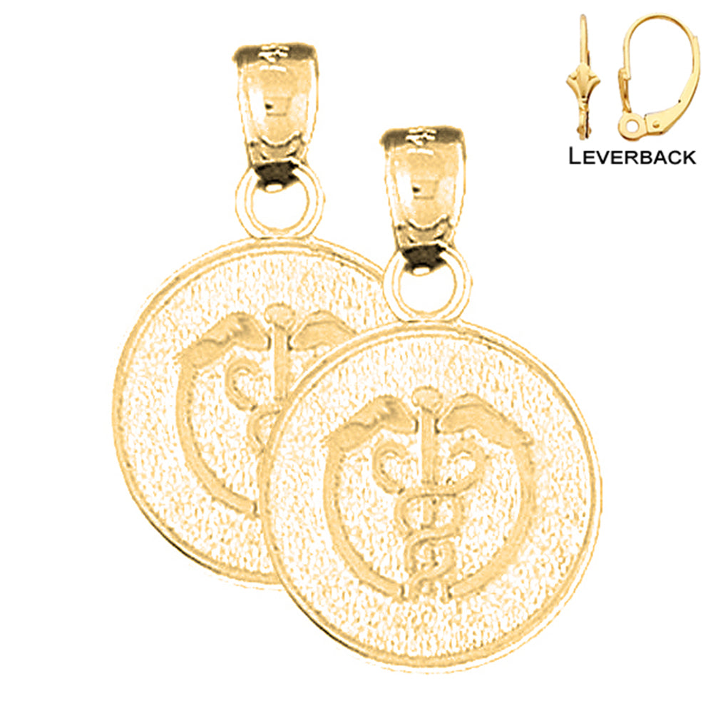 14K or 18K Gold 24mm Medical Alert Caduceus Earrings