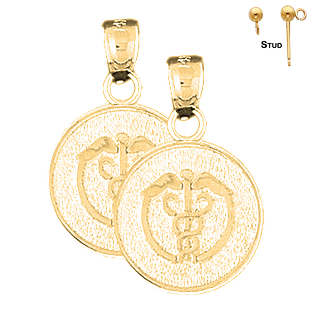 Pendientes Caduceo de Alerta Médica de Oro de 14K o 18K