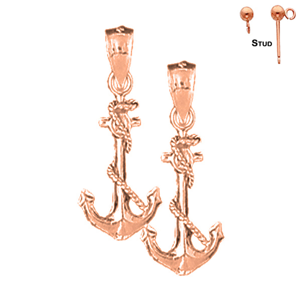 14K or 18K Gold 25mm Anchor With Rope Earrings