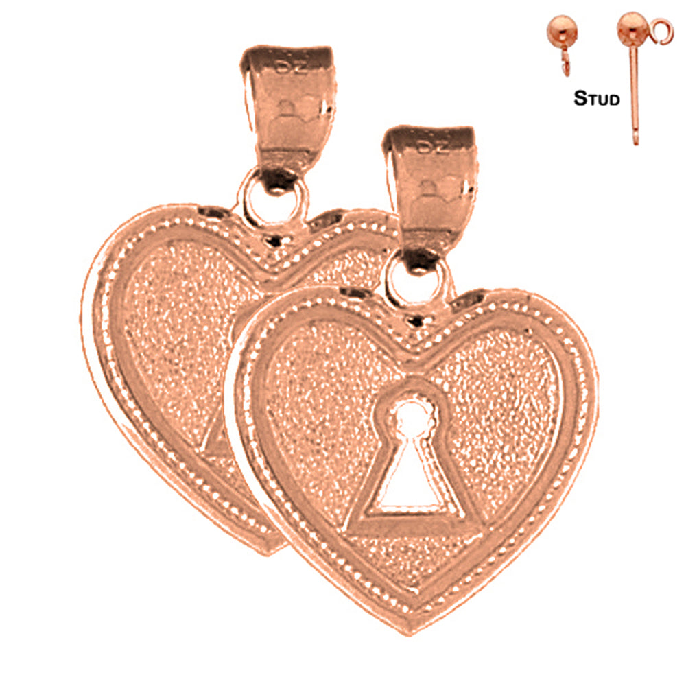Candado de corazón de 25 mm de oro de 14 quilates o 18 quilates, pendientes de bloqueo