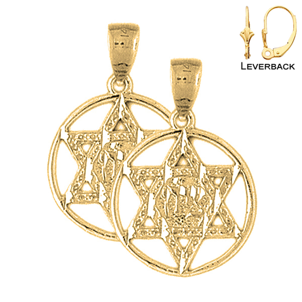 14K or 18K Gold 25mm Star of David in Circle Earrings