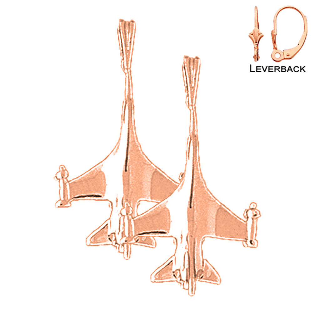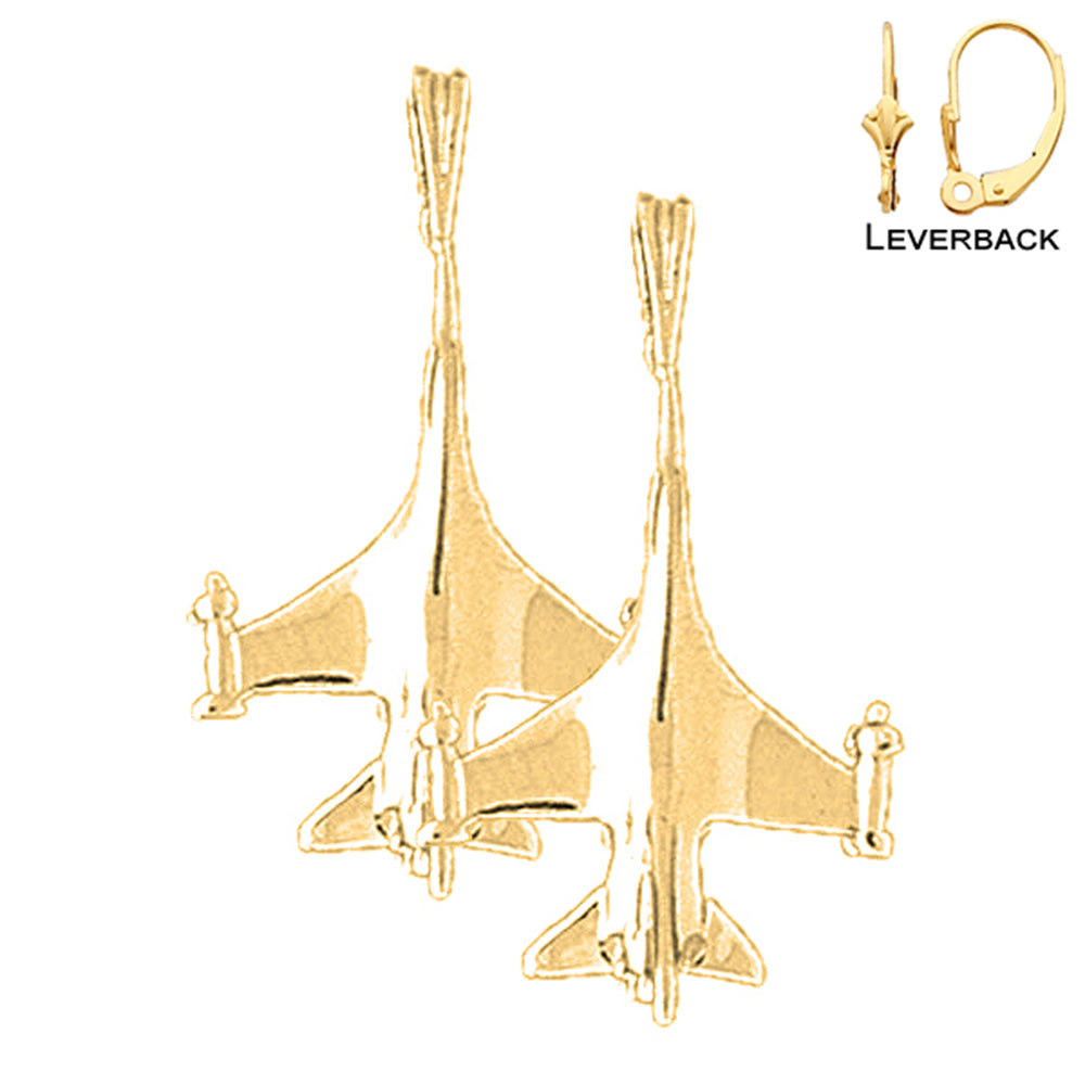 14K or 18K Gold 26mm Airplane Earrings